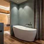 L'impianto di climatizzazione e servizi per la preparazione di tè/caffè, garantiscono la comodità della camera nel Calepina Alpine Suite. I bagni dispongono di una cabina doccia e un bagno con WC separato e diverse comodità, tra cui asciugacapelli e teli da bagno.